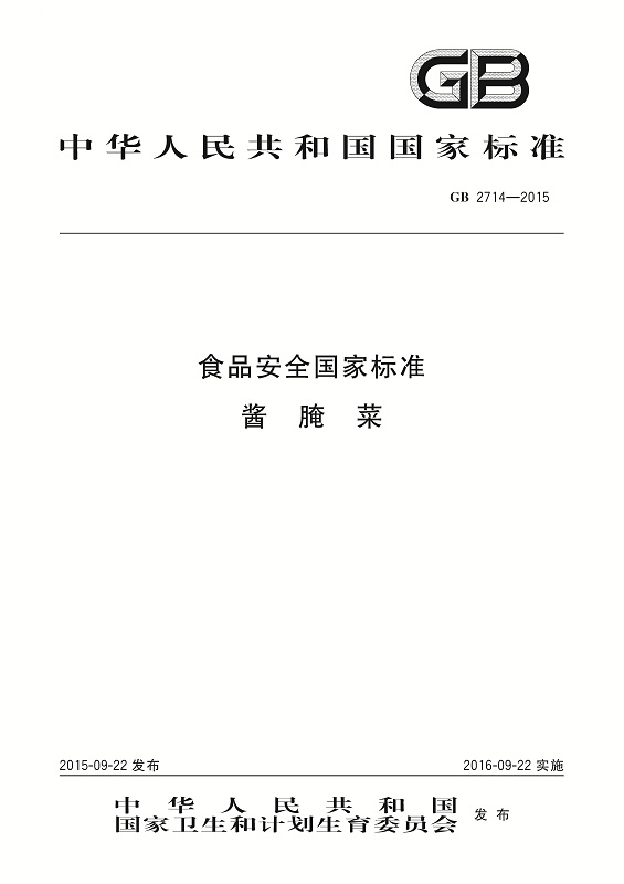 GB 2714-2015 食品安全國家標準 醬腌菜